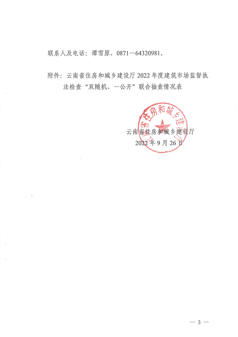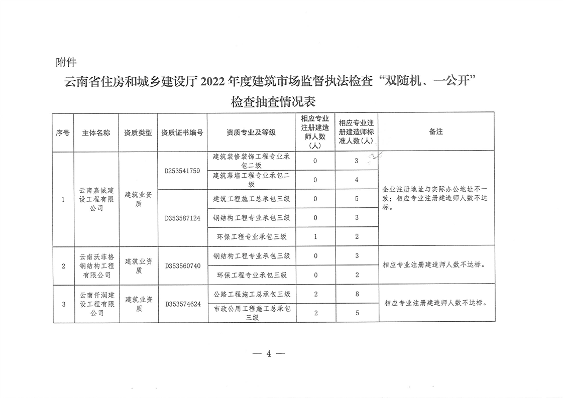 云南省住房和城鄉(xiāng)建設廳關于2022年度建筑市場監(jiān)督執(zhí)法檢查“雙隨機、一公開”抽查檢查情況的通報
